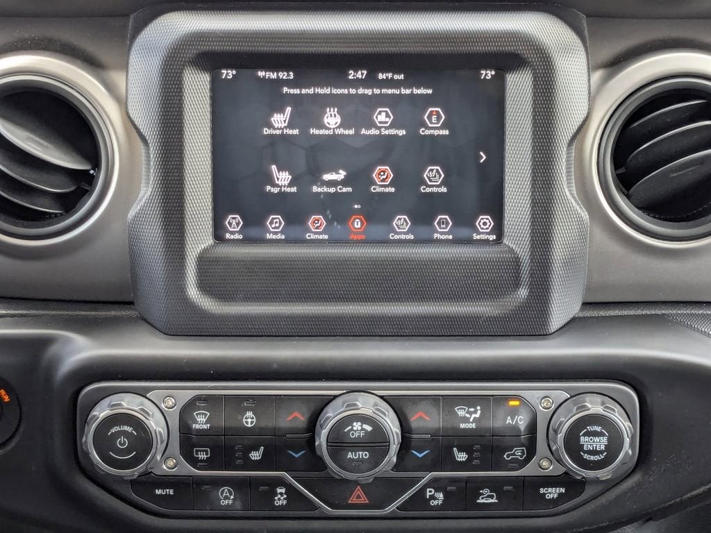 Inside, the Gladiator Sport pampers you with a wealth of premium features, including a 7-inch touchscreen display with integrated Apple CarPlay and Android Auto, dual-zone automatic climate control, and a heated steering wheel. The Safety Group adds advanced driver assistance technologies like Blind Spot Monitoring and Rear Park Assist, providing you with added peace of mind on the road.
