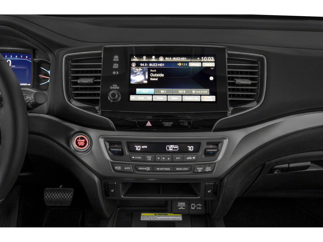 - Radio: 215-Watt Audio System -inc: 7 speakers, subwoofer, Bluetooth® HandsFreeLink and streaming audio, MP3/auxiliary input jack, Radio Data System (RDS), Speed-sensitive Volume Compensation (SVC), 2.5-amp USB charging port (1 port in center console/2 ports on 2nd-row), 8" display audio w/high-resolution touch-screen and customizable feature settings, HondaLink, CabinControl remote compatibility, Apple CarPlay integration, Android Auto integration, SMS text message function, SiriusXM (SiriusXM requires a subscription after any trial period, If you decide to continue your SiriusXM service at the end of your trial subscription, the plan you choose will automatically renew and bill at then-current rates until you call SiriusXM at 1-866-635-2349 to cancel, See our customer agreement for complete terms at www.siriusxm.com, Fees and programming subject to change, Available in the 48 contiguous United States and D.C, SiriusXM and all related marks and logos are trademarks of SiriusXM Radio Inc.), HD radio, 2.5-amp USB smartphone/audio interface (1 port in front console) and wireless phone charger