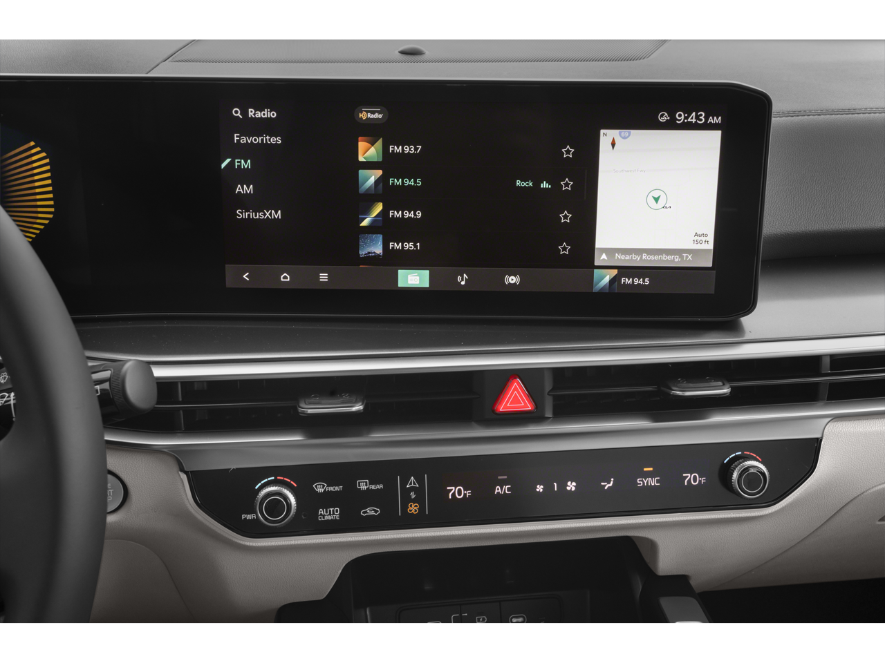 • Radio: AM/FM Standard Sound System -inc: 12.3" ccNC lite touchscreen, navigation, HD Radio, Bluetooth® w/audio remote control, wireless Android Auto and wireless Apple CarPlay, voice recognition, Sirius XM, modem, Kia Connect, Wi-Fi hot spot, Over-The-Air Updates (OTA), 6 speakers and USB